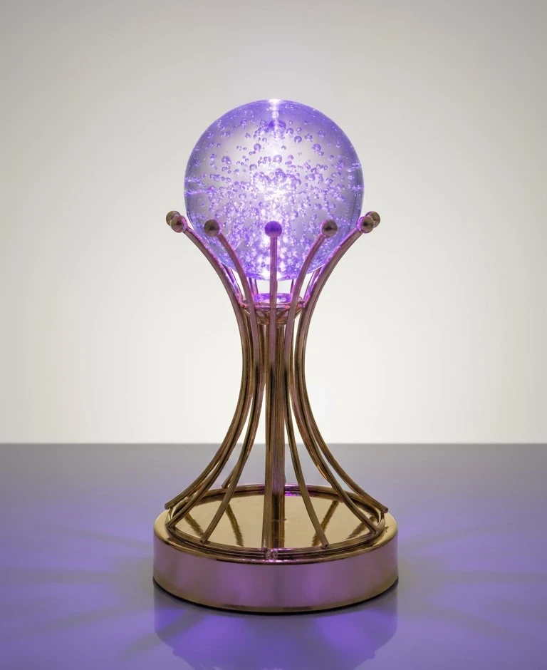 Elevate your home or office décor with the AuraGlow Crystal Orb Accent Lamp, a piece that combines artistic metalwork with mesmerizing LED light. This lamp isn't just illumination; it's a dynamic, sparkling centerpiece.