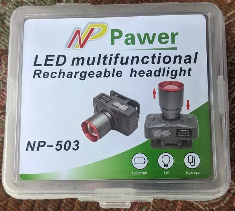 The NP Pawer NP-503 LED multifunctional Rechargeable headlight is a compact, high-power headlamp designed for hands-free use in various outdoor and professional settings.